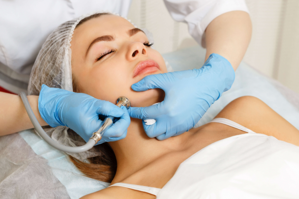 This rapid vibration vaporises the moisture on the skin’s surface to gently peel away the superficial layers of dead skin cells and sebum. The treatment then reveals a fresh, healthy, and glowing complexion. This treatment is an excellent and painless alternative to traditional blackhead removal facials.